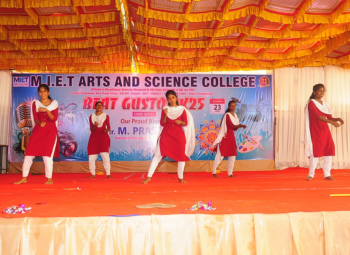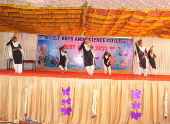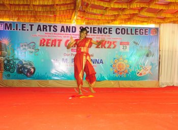 On the occasion of the Cultural Programme, MIET Arts and Science College organized a vibrant cultural function “BEAT GUSTO 2k25” was held on 22.12.25 & 23.12.25.It was a two days programme. The theme of the day was “enthusiasm, energy, and great enjoyment in doing something” that showcased the talents and enthusiasm of the students. The event took place in the college ground which was beautifully decorated to create a festive atmosphere.The Cultural Programme Presided over by the Principal of the college Dr.Y.Glory Violet Aron by inspiring the students to hold on to the positive energy and to always strive towards excellence. The special guest Mr.M.PRASANNA Alumni of our college. DAY ONE: Inauguration, Various Competitions. DAY TWO: Cultural Programme, Prize Distribution