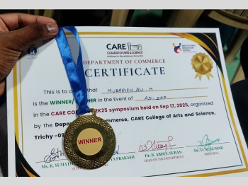 The Department of Commerce at M.I.E.T. Arts & Science College was established in 1994 and has steadily expanded its academic offerings over the years. The Postgraduate (PG) program began in 2004, followed by additional advancements in 2005 and 2018. The department now also offers M.Phil. and Ph.D. programs, initiated in 2016, catering to advanced research and scholarly pursuits. As per university regulations, the department accommodates 180 undergraduate (UG) students and 30 postgraduate (PG) students. The department consistently achieves over 90% results annually, with students excelling in both academics and co-curricular activities.